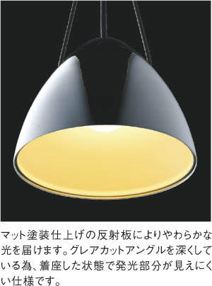 ◆LED一体型 ◆明るさ:白熱球60W相当 ◆電気工事不要タイプ ◆総W数:LED6.2W ◆部位・材質・色・仕上げ セード:鋼・クロムメッキ 飾り:鋼・黒ニッケルメッキ ◆サイズ:高-250 幅-φ115 全長-1300〜600mm 重-0.6kg ◆消費電力:6.2W ◆色温度:2700K ◆演色性:Ra85 ◆光源寿命:40,000時間 ◆高さ調節可能型 ◆コード・キャブタイヤコード φ3.8 ◆傾斜天井ではご使用になれません ◆調光器との併用はできません ※色温度:2700K ※白熱球60W相当Y-pendant 上質なつや感が魅力のペンダント。