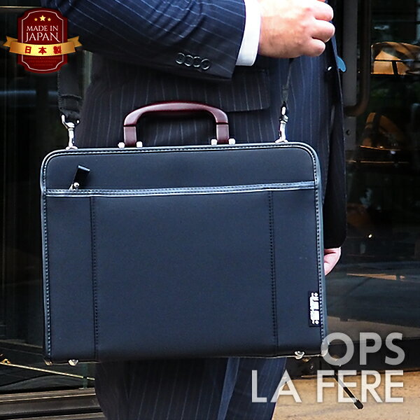 [青木鞄] オプス:A4対応 鍵付 口枠2wayソフトアタッシュケース L(ウッドハンドル)[6728] 【送料無料/代引手数料無料】 LA FERE Ops *日本製 ナイロン 施錠 キーロック PPファイル付 肩掛け ビジネスバッグ 鞄 メンズ ブラック*